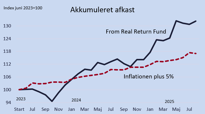 Vores dynamiske From Real Return Fund er en balanceret fond, som investerer i noterede aktiver på tværs af aktivklasser. Målet er at skabe et langsigtet realt afkast (efter inflation) vha. aktiv risikostyring, hvor eksponeringen til forskellige aktivklasser løbende justeres efter de økonomiske og finansielle forhold.