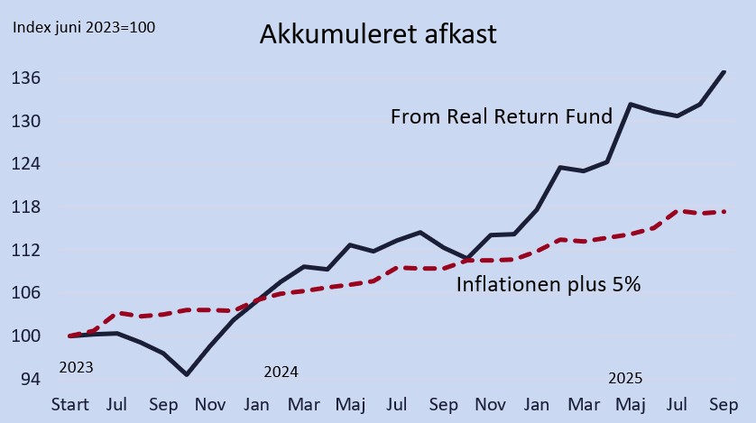 Vores dynamiske From Real Return Fund er en balanceret fond, som investerer i noterede aktiver på tværs af aktivklasser. Målet er at skabe et langsigtet realt afkast (efter inflation) vha. aktiv risikostyring, hvor eksponeringen til forskellige aktivklasser løbende justeres efter de økonomiske og finansielle forhold.