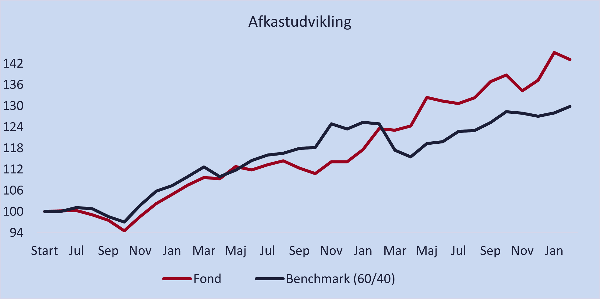 Nedenfor er vist historisk afkast siden etablering af fonden i juni 2023. Der er investeret efter samme filosofi og metode, som Bertil From succesfuldt udviklede som CIO i sit tidligere virke i Lundbeckfonden.